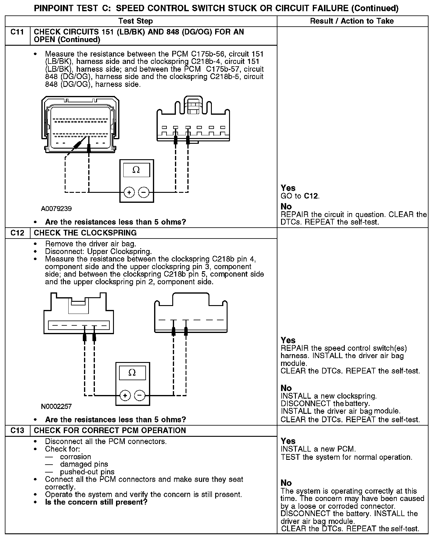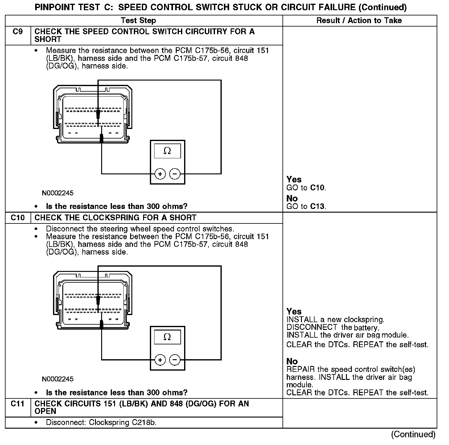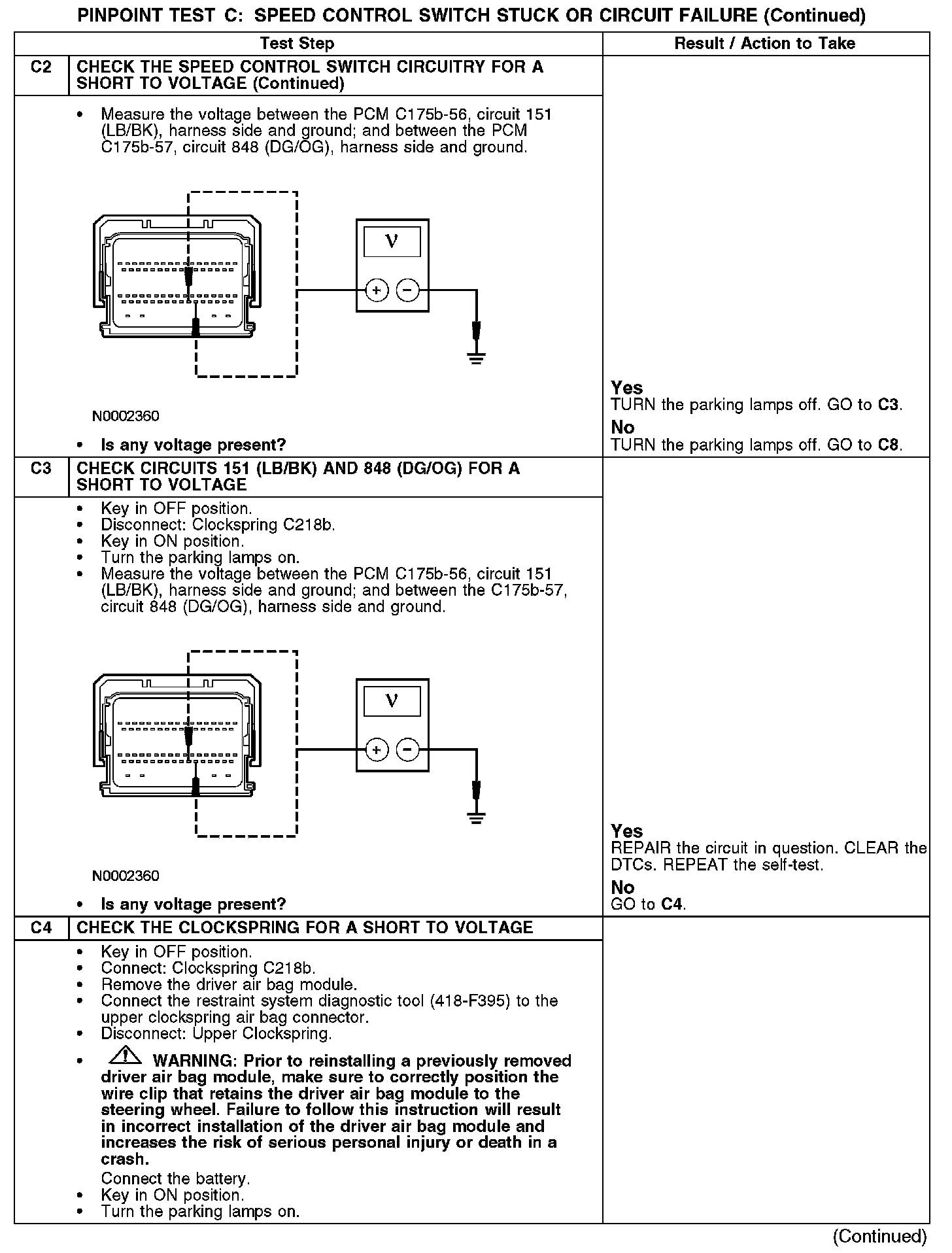 PINPOINT TEST C: SPEED CONTROL SWITCH STUCK OR CIRCUIT FAILUREC1-C2: