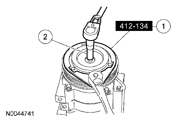 5. CAUTION: Do not use air tools. Damage to the air conditioning (A/C) clutch pulley or A/C compressor may result.