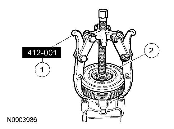 NOTE: The A/C clutch components should be reused unless obvious signs of damage are found. If excessive grooving is found, a new A/C clutch disc and hub and a new A/C compressor pulley must be installed together. Otherwise, each component can be installed individually where needed.