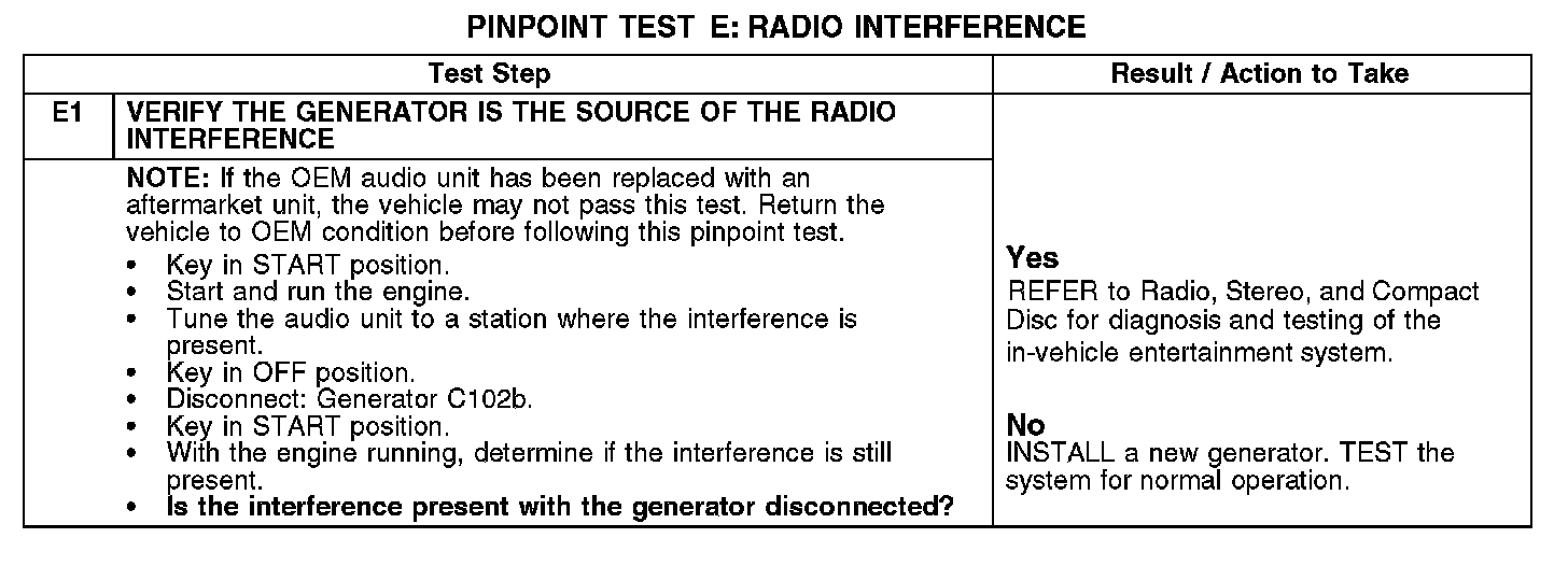 PINPOINT TEST E: RADIO INTERFERENCEE1: