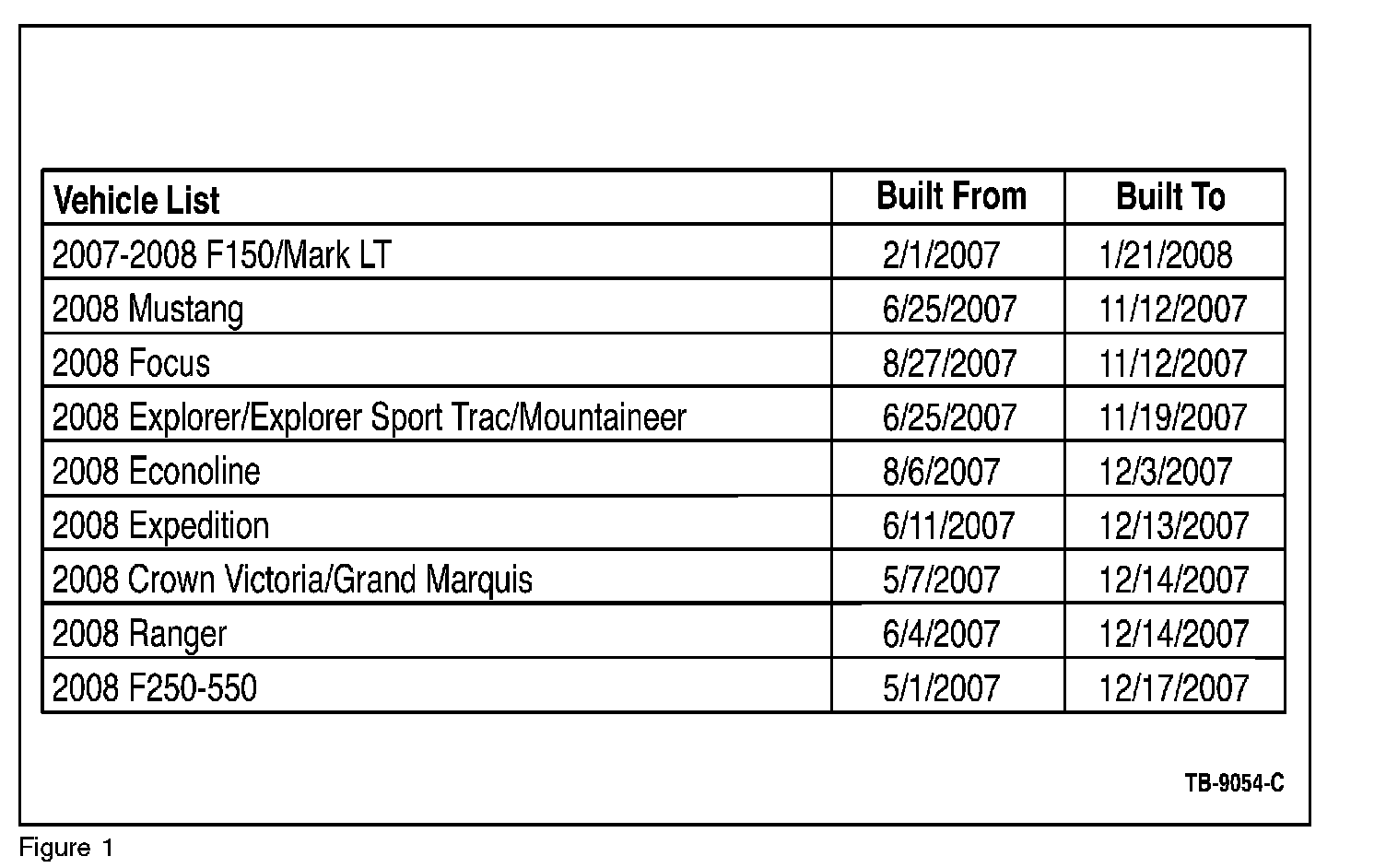 1. Refer to vehicle list for build date range. (Figure 1)
