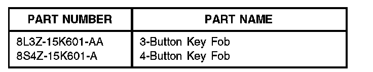 2. Is the vehicle Key Fob part number 8L3T-15K601-AA (3 button) or 8S4T-15K601-AA (4 button)? (Figure 2)