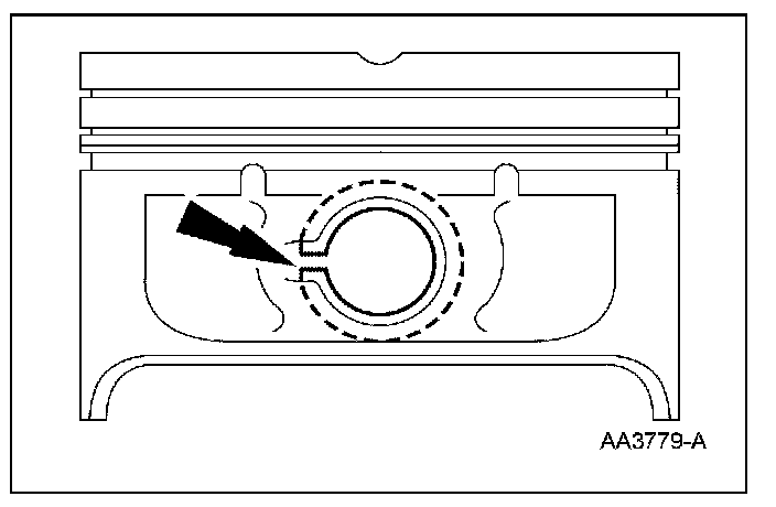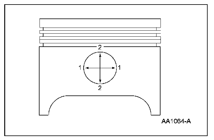 1. Measure the piston pin diameter in 2 directions at the points shown. Verify the diameter is within specification.