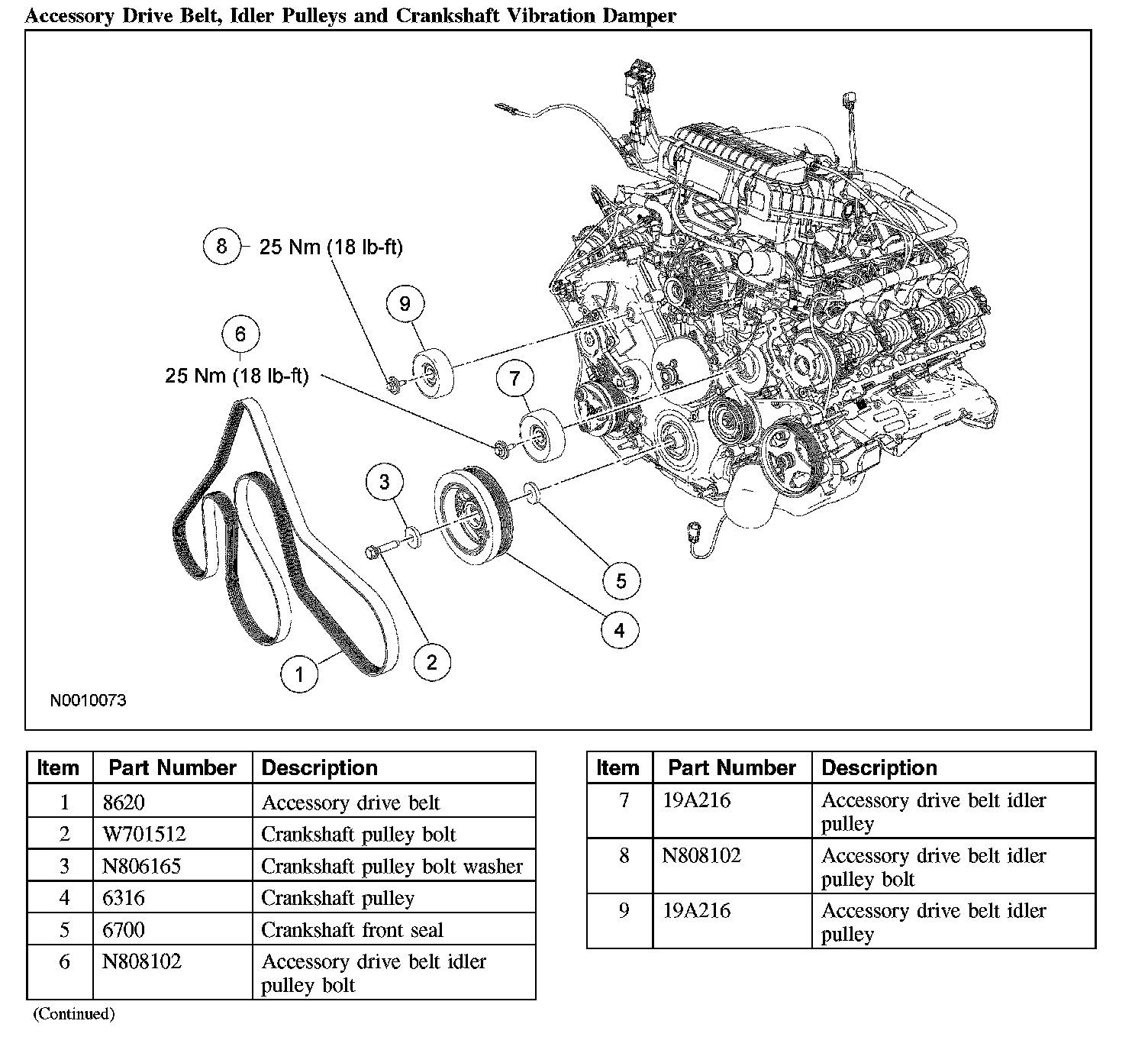Accessory Drive Belt, Idler Pulleys and Crankshaft Vibration Damper: