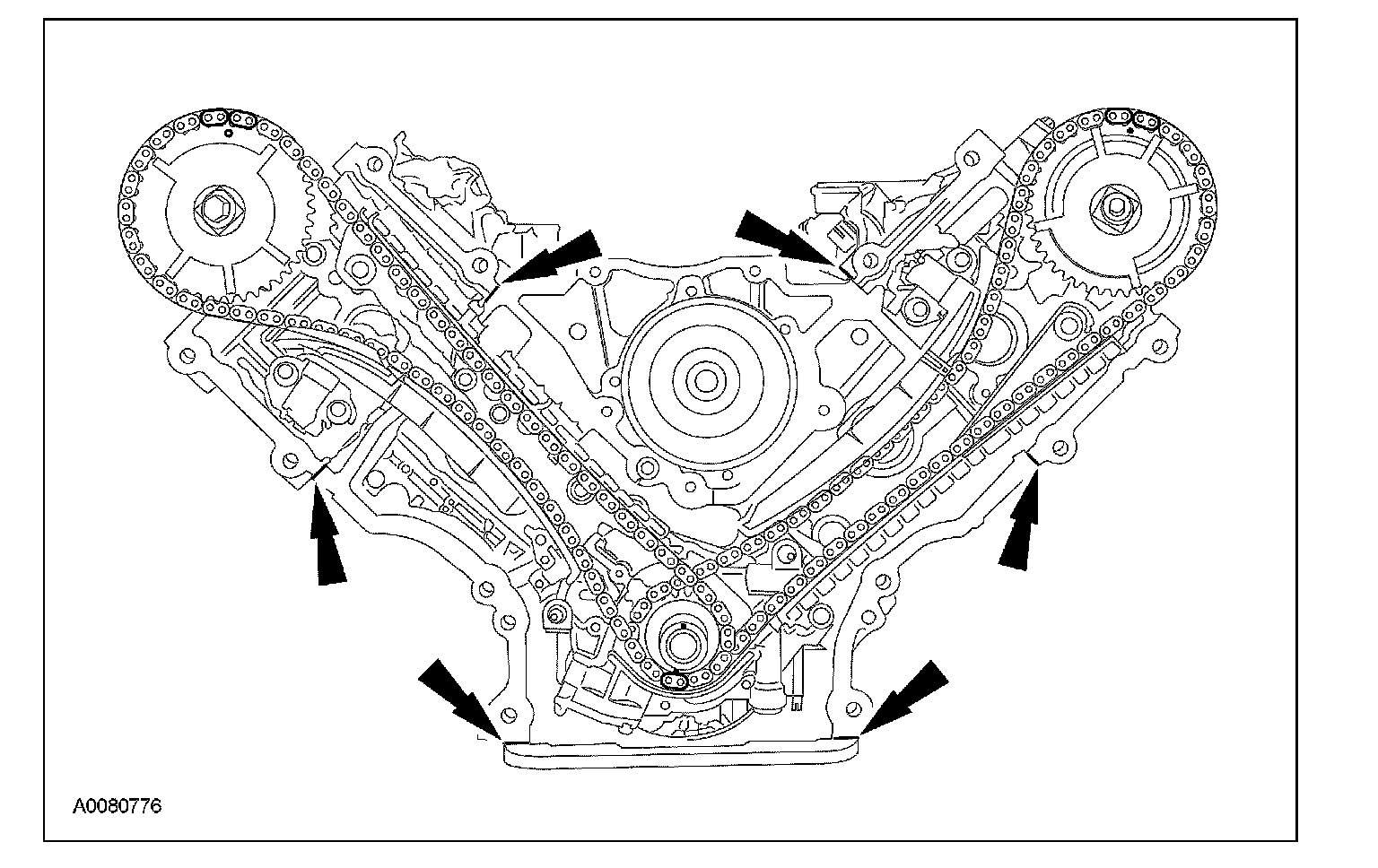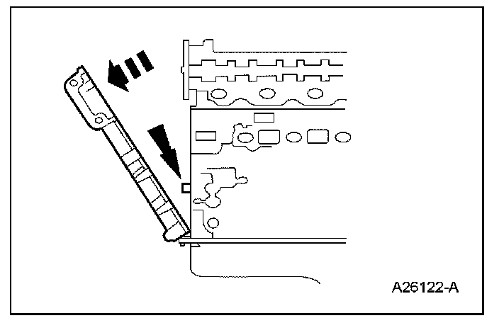^ Remove the engine front cover gaskets.
