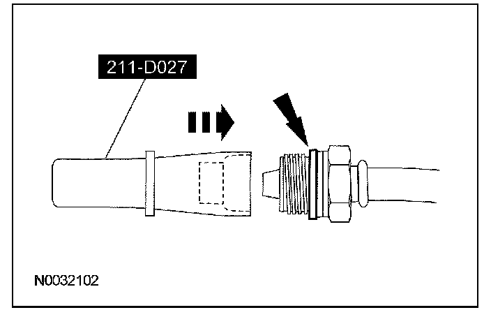 8. Using the special tool, install a new O-ring seal on the pressure line fitting.