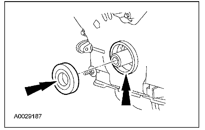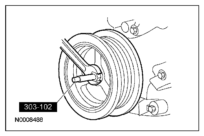 ^ Discard the crankshaft pulley bolt.
