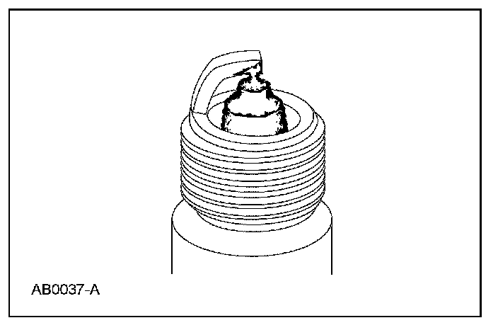 5. Inspect for pre-ignition, identified by melted electrodes and a possibly damaged insulator. Metallic deposits on the insulator indicate engine damage. This may be caused by incorrect ignition timing, wrong type of fuel or the unauthorized installation of a Heli-Coil(R) insert in place of the spark plug threads.