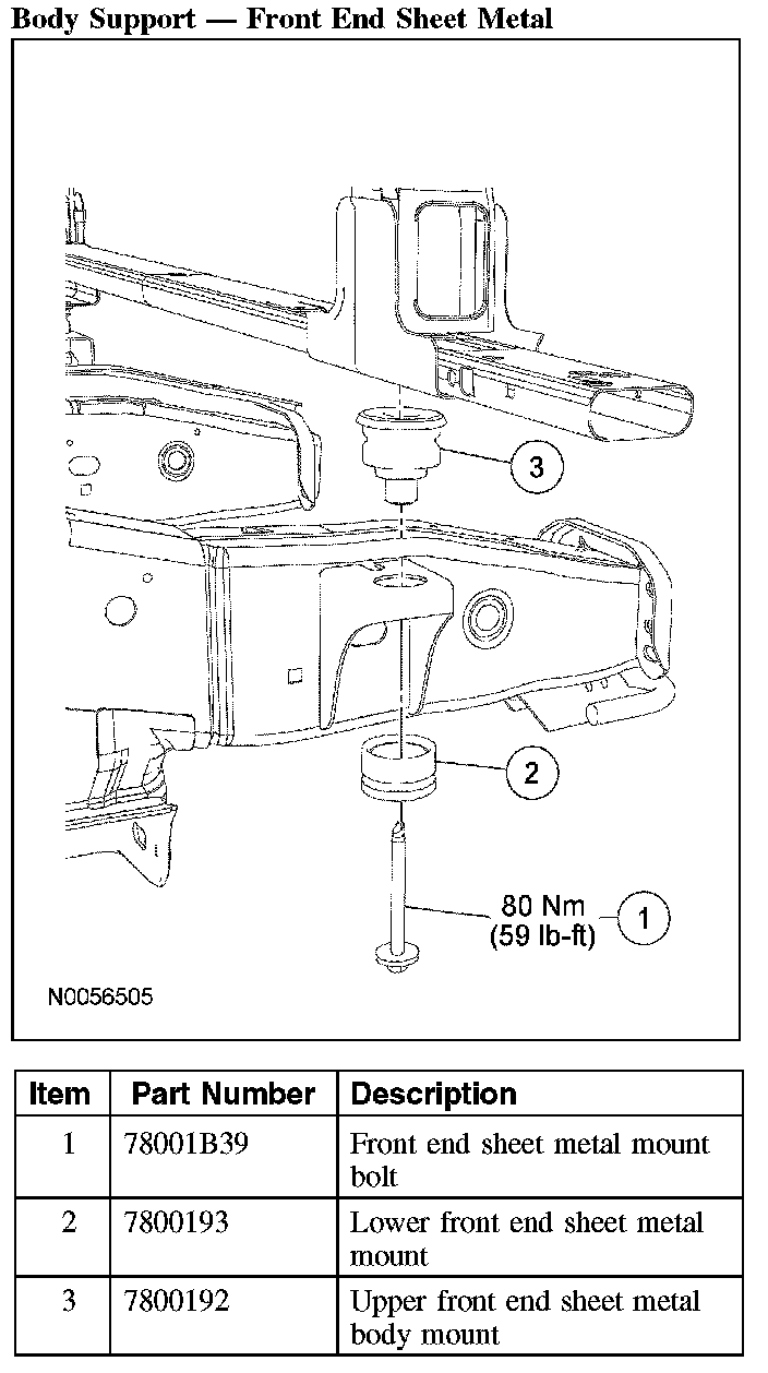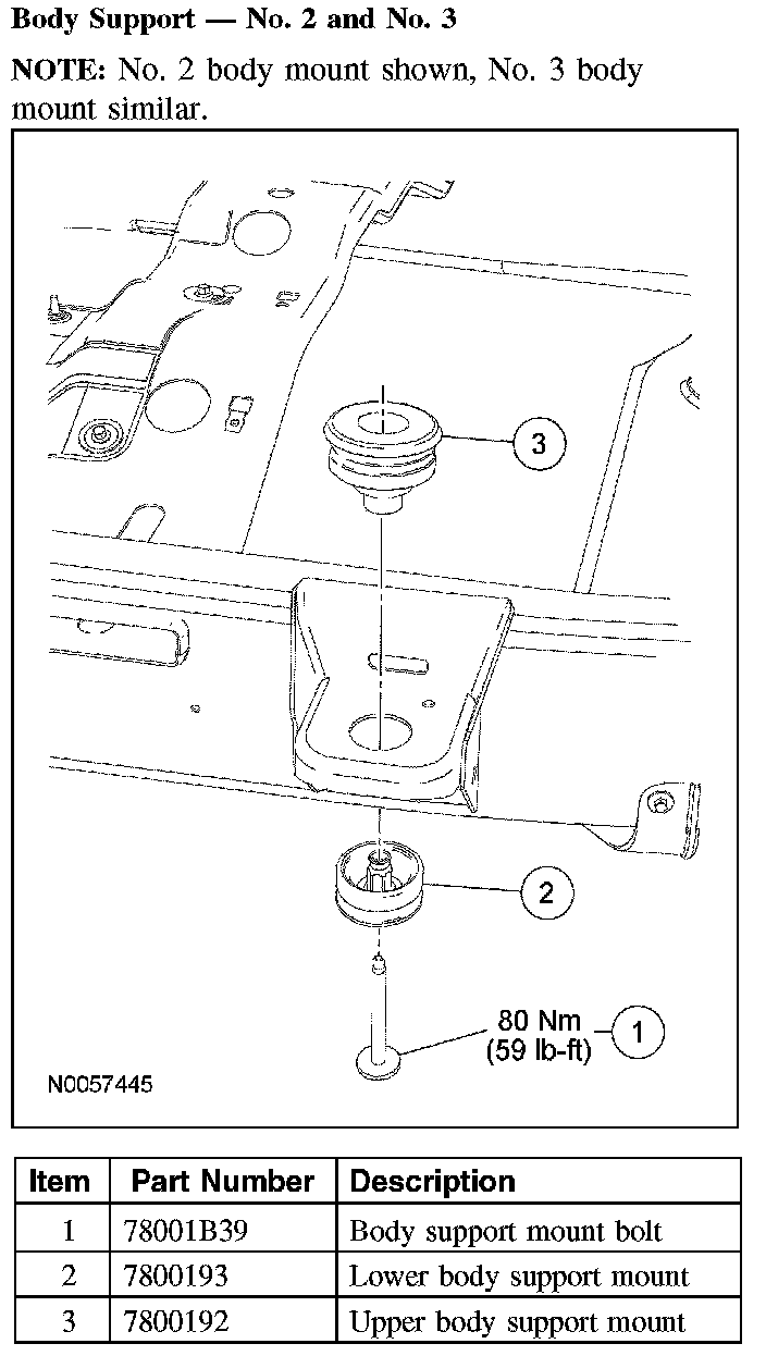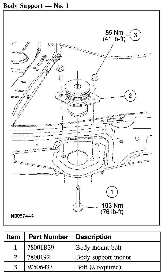 - Do not reuse body support mounting fasteners. New fasteners must be installed for each fastener that has been removed or loosened.
