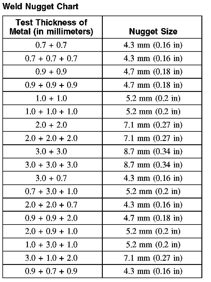 Weld Nugget Chart: