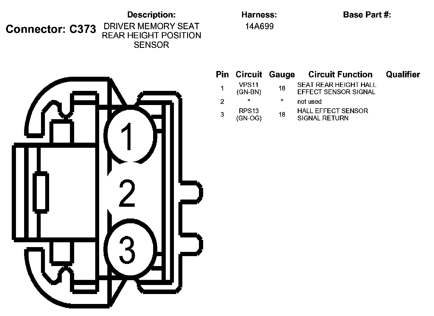 Driver Memory Seat Rear Height Position Sensor