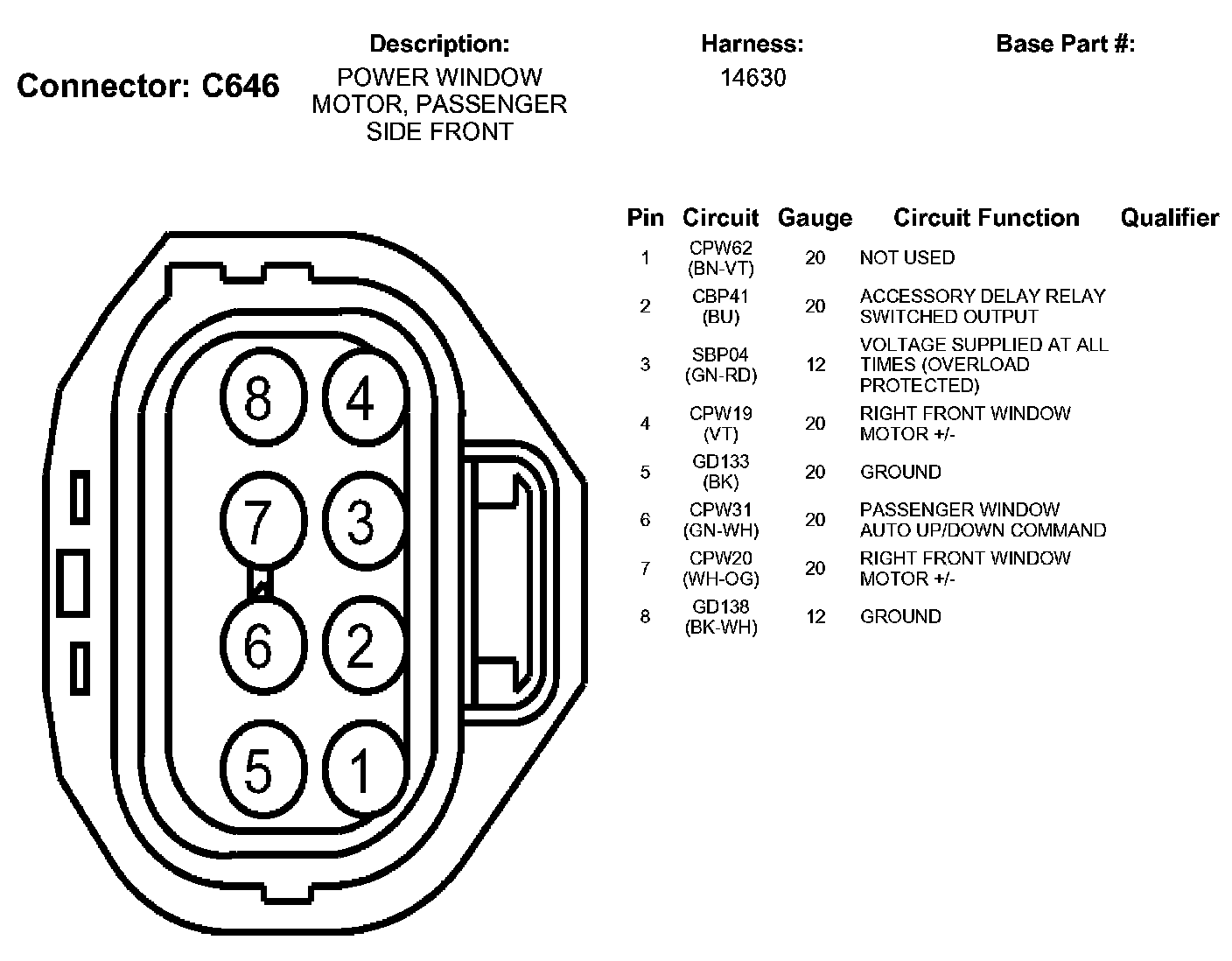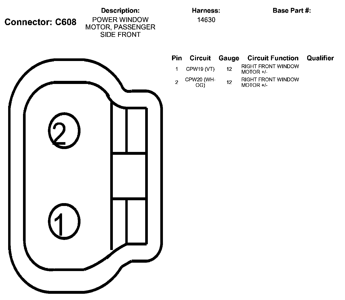 Power Window Motor, Passenger Side Front