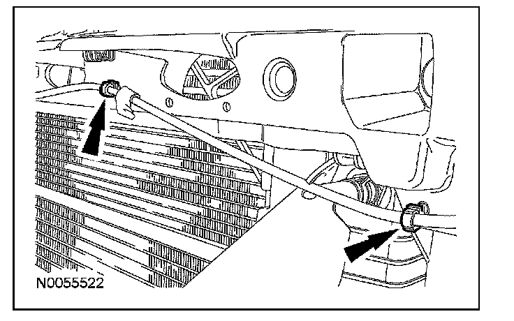 6. Connect the transmission fluid cooler tubes and install the secondary latches.