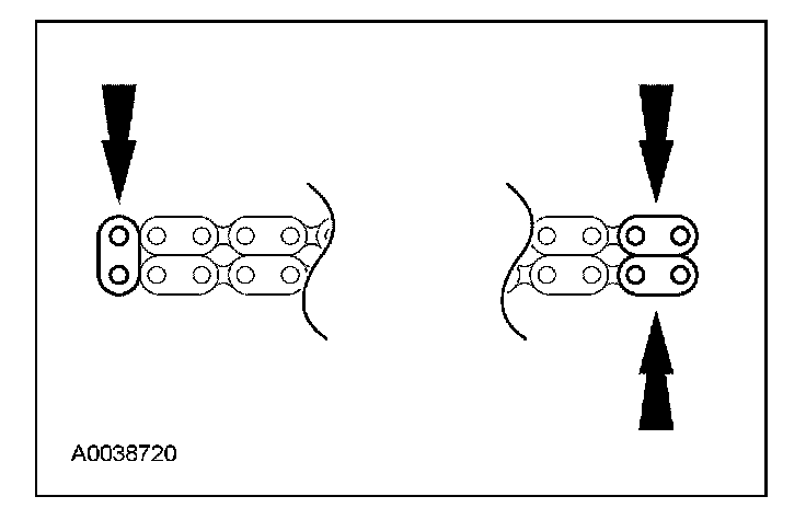 37. If the copper links are not visible, mark 2 links on one end and 1 link on the other end, and use as timing marks.