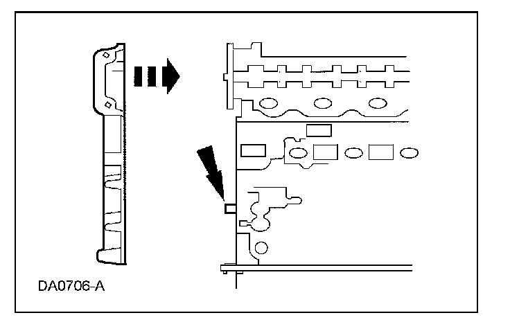 42. NOTE: The LH timing chain tensioner arm has a bump near the dowel hole for identification.