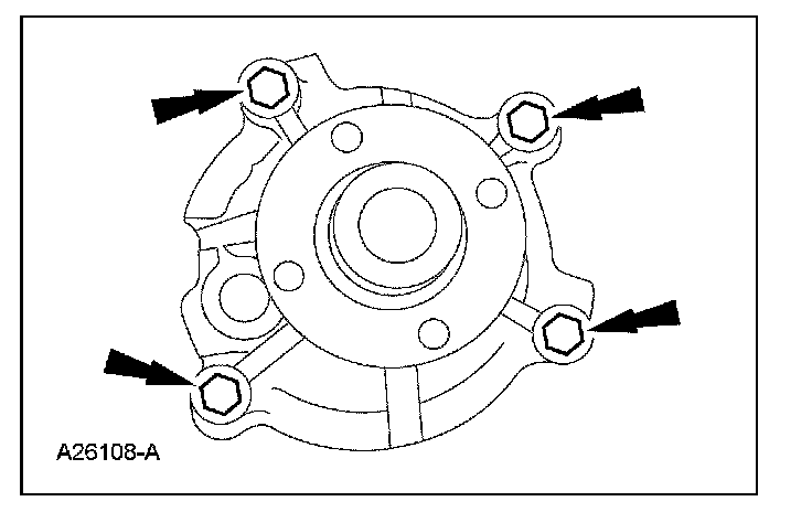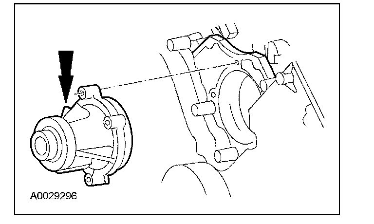 56. CAUTION: Do not rotate the coolant pump housing once the coolant pump has been positioned in the cylinder block. Damage to the O-ring seal will occur.