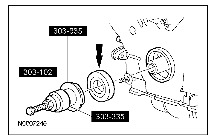 59. Using the special tools, install a new crankshaft front seal into the engine front cover.