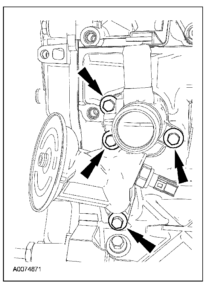 35. Remove the coolant pump bolts.