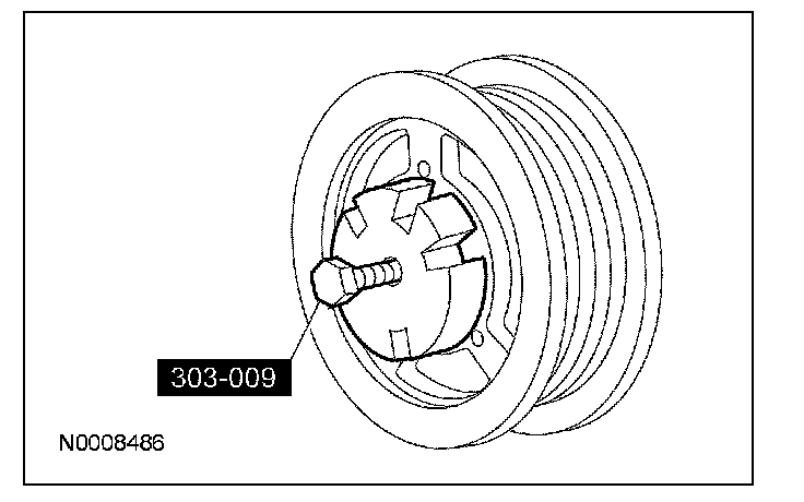 37. Remove and discard the crankshaft pulley bolt. Using the special tool, remove the crankshaft pulley.