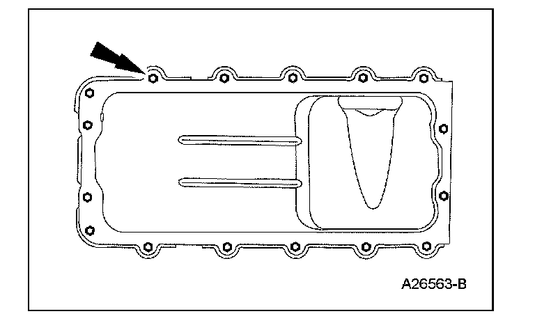 39. Remove the bolts, oil pan and discard the oil pan gasket.