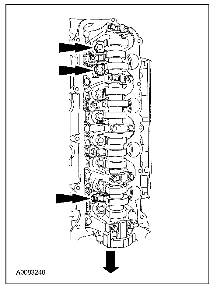 Remove only the 3 camshaft roller followers shown in the illustration from the RH cylinder head.