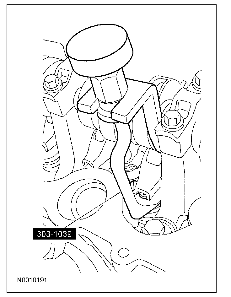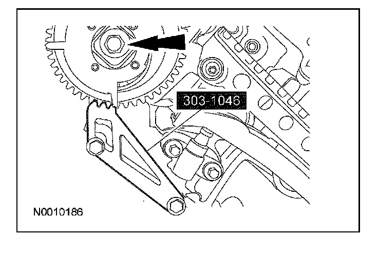 54. CAUTION: Damage to the variable camshaft timing (VCT) phaser sprocket assembly will occur if mishandled or used as a lifting or leveraging device.