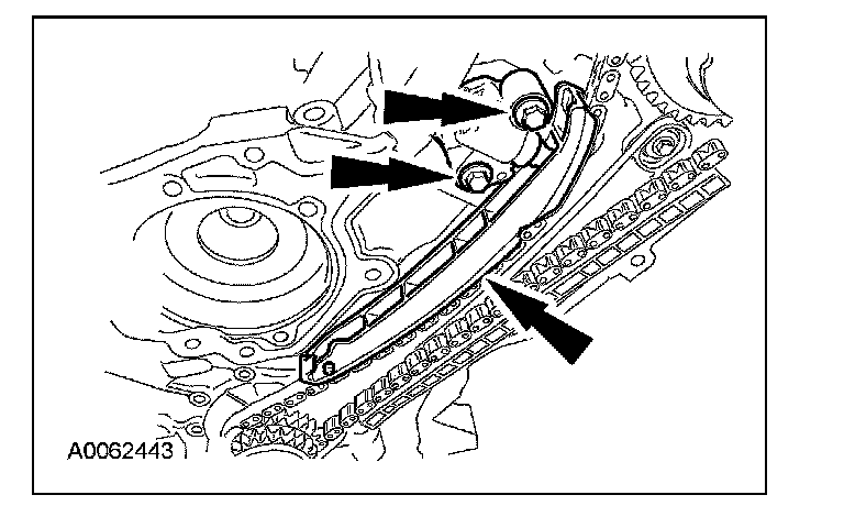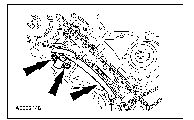 Remove the bolts, the LH timing chain tensioner and tensioner arm.