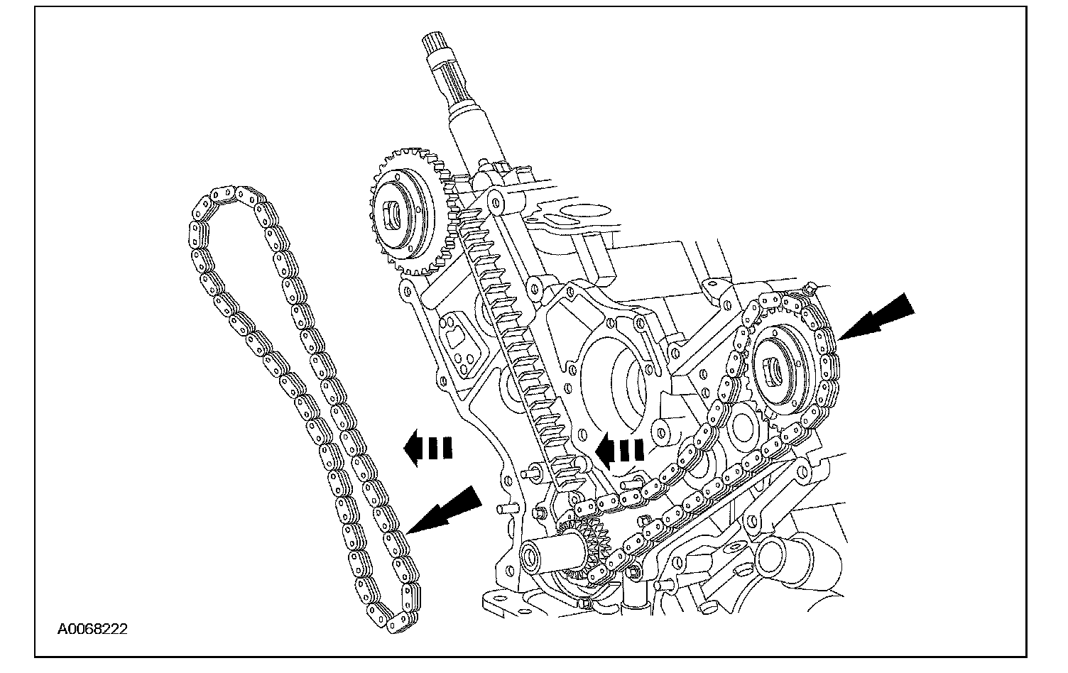 ^ Remove the RH timing chain from the camshaft sprocket.