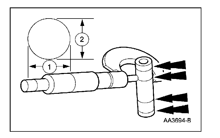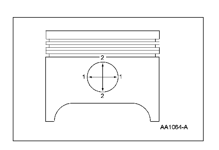 1. Measure the piston diameter 90 degrees from the piston pin and 42 mm (1.65 in) down from the top of the piston at the point indicated.