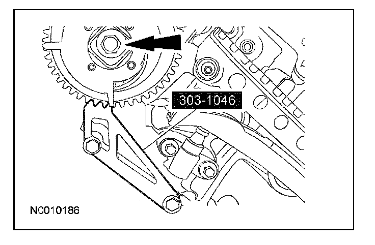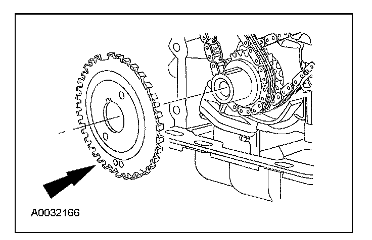15. CAUTION: Damage to the variable camshaft timing (VCT) phaser sprocket assembly will occur if mishandled or used as a lifting or leveraging device.