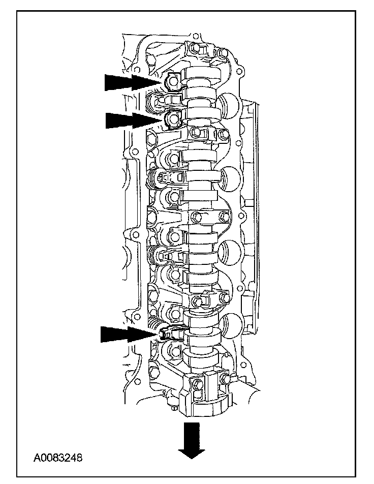 ^ Position the remaining camshaft bearing caps.