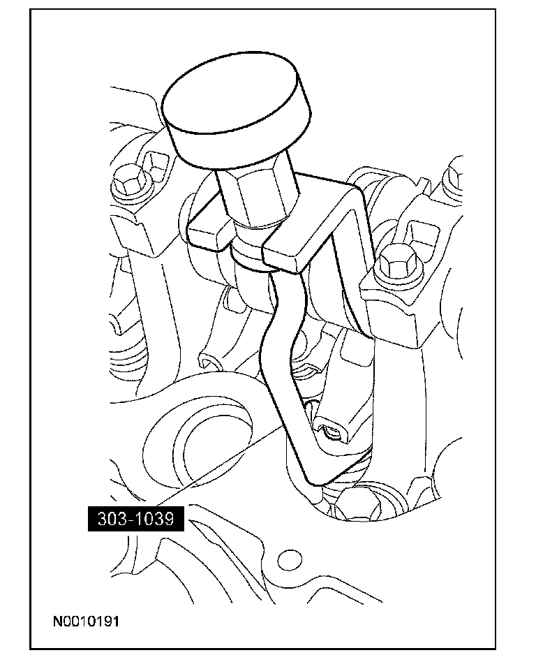 10. CAUTION: If one or both of the tensioner mounting bolts are loosened or removed, the tensioner-sealing bead must be inspected for seal integrity. If cracks, tears, separation from the tensioner body or permanent compression of the seal bead is observed, install a new tensioner. Failure to follow these instructions may result in engine damage.