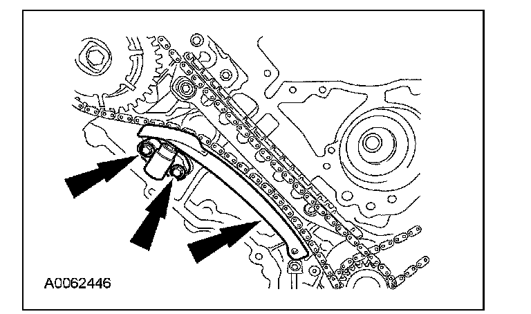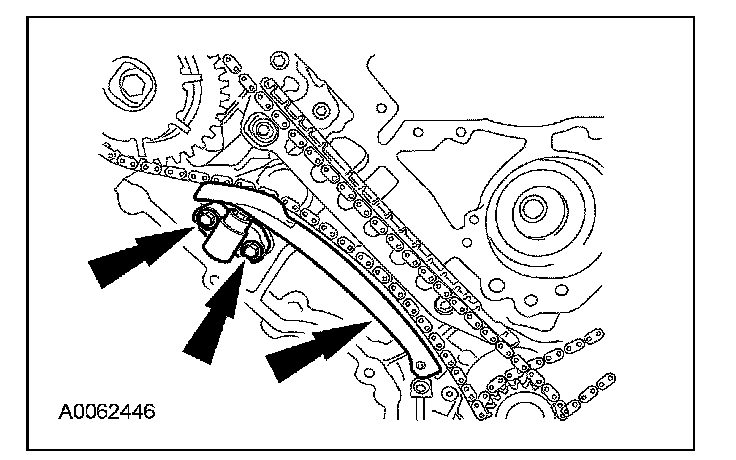 Remove the bolts, the LH timing chain tensioner and tensioner arm.