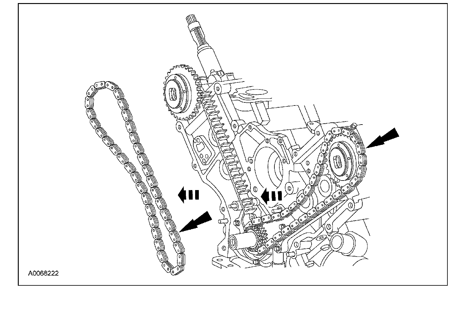 ^ Remove the RH timing chain from the camshaft sprocket.