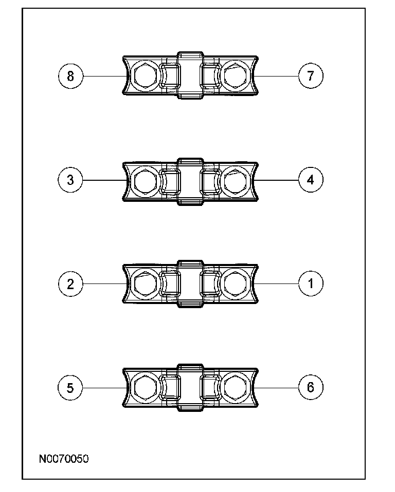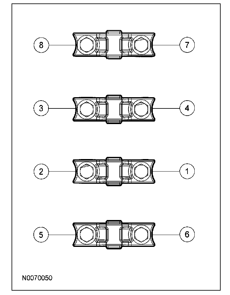 21. CAUTION: The camshaft bearing caps must be installed in their original locations. Record camshaft bearing cap locations. Failure to follow these instructions may result in engine damage.