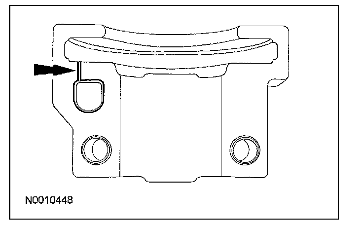 ^ The camshaft front thrust bearing cap contains an oil metering groove. Make sure the groove is free of foreign material.