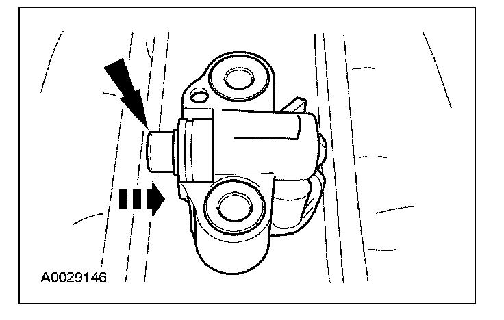 7. Install a retaining clip on the tensioner to hold the plunger in during installation.