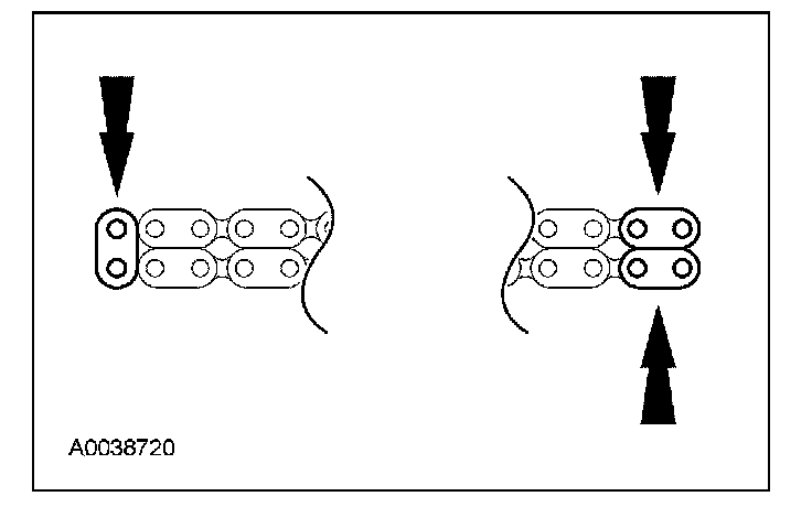 9. If the copper links are not visible, mark 2 links on one end and 1 link on the other end, and use as timing marks.