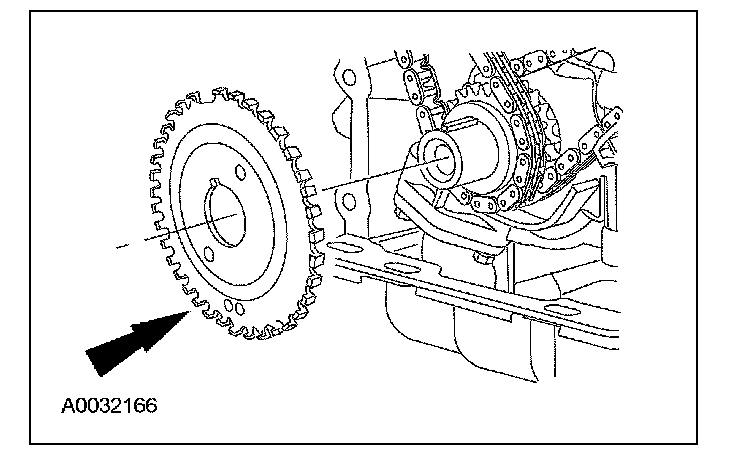 ^ Remove the LH timing chain and crankshaft sprocket.