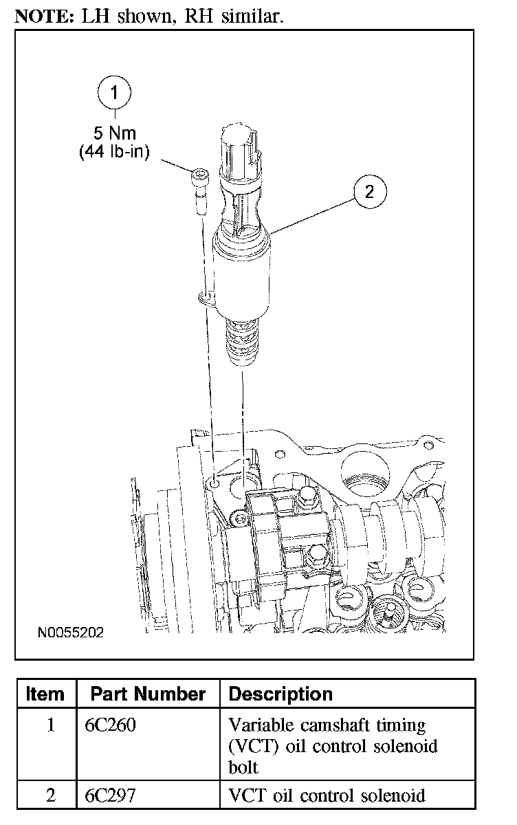 VARIABLE CAMSHAFT TIMING (VCT) OIL CONTROL SOLENOIDRemoval and Installation