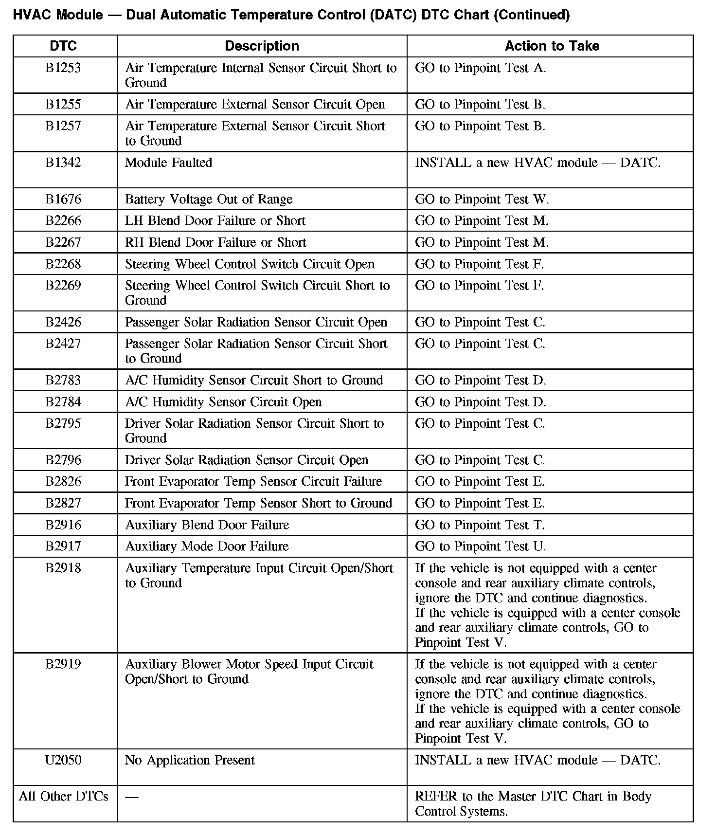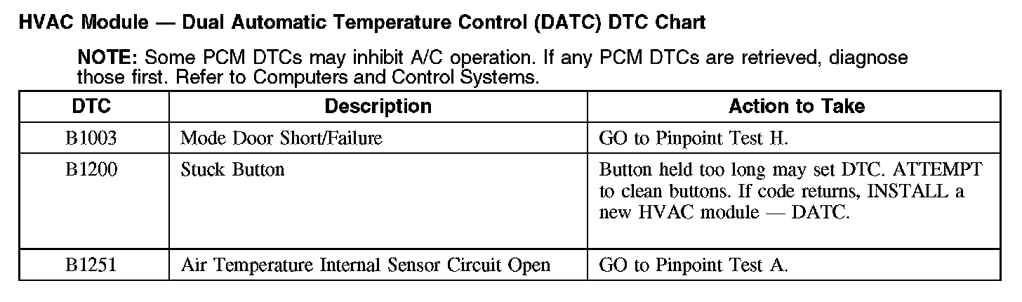 HVAC Module - Dual Automatic Temperature Control (DATC) DTC Chart