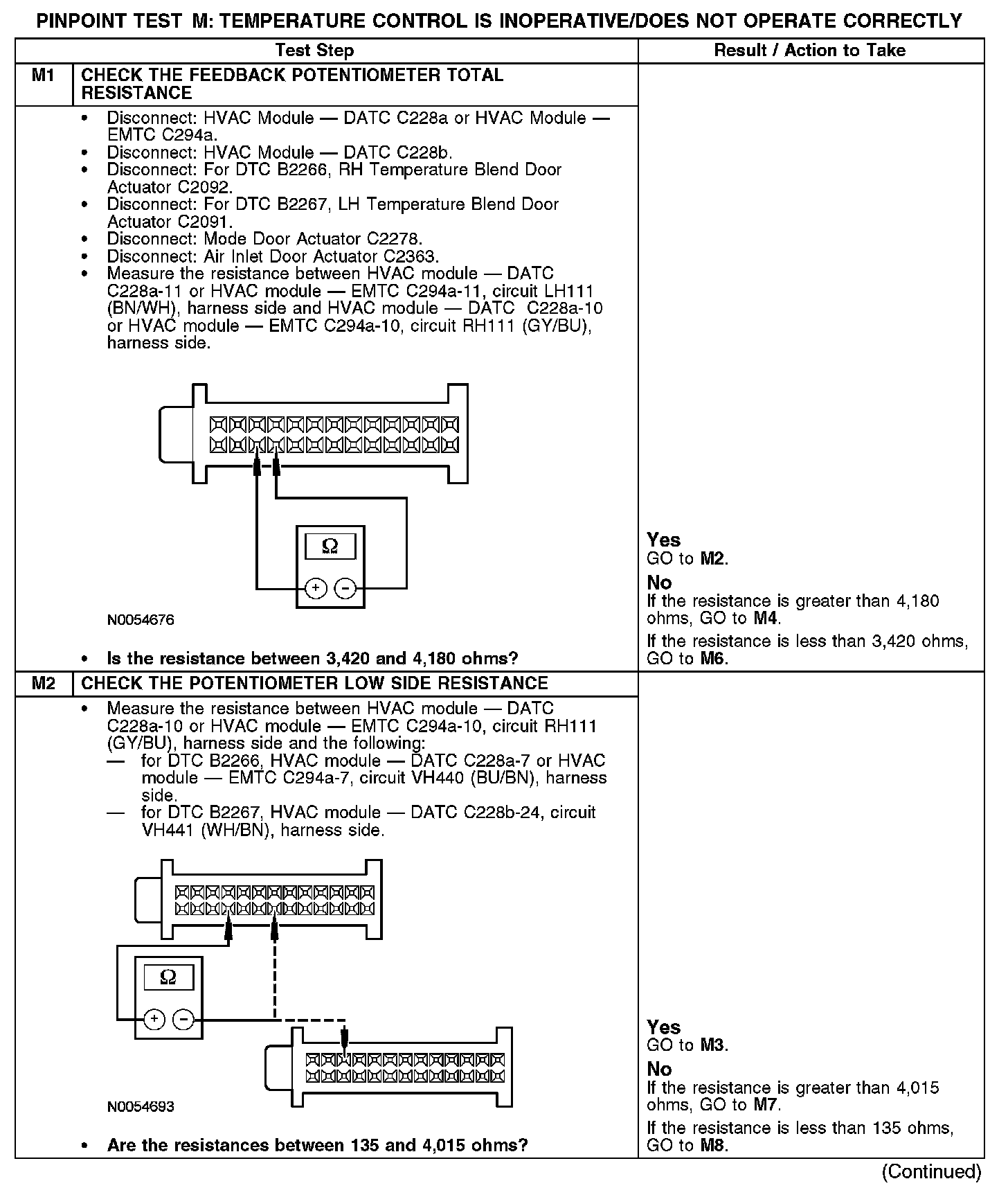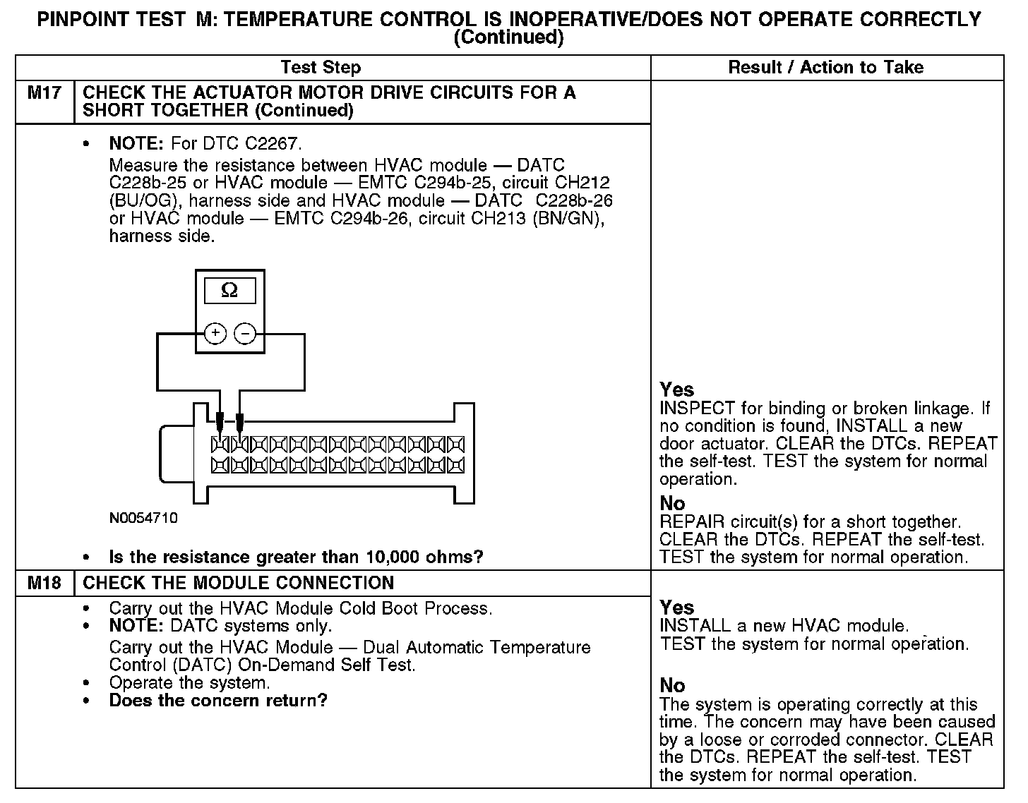 PINPOINT TEST M: TEMPERATURE CONTROL IS INOPERATIVE/DOES NOT OPERATE CORRECTLYNormal Operation