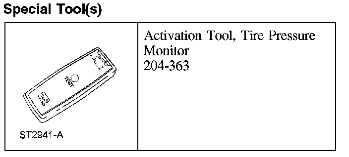 Tire Pressure Monitoring System (TPMS) Sensor ActivationNOTE: The tire pressure sensors will go into a "sleep mode" after 30 minutes of inactivity to conserve battery power. The sensors do not transmit information while in sleep mode, it will be necessary to wake them up so they will transmit the latest tire pressure information.