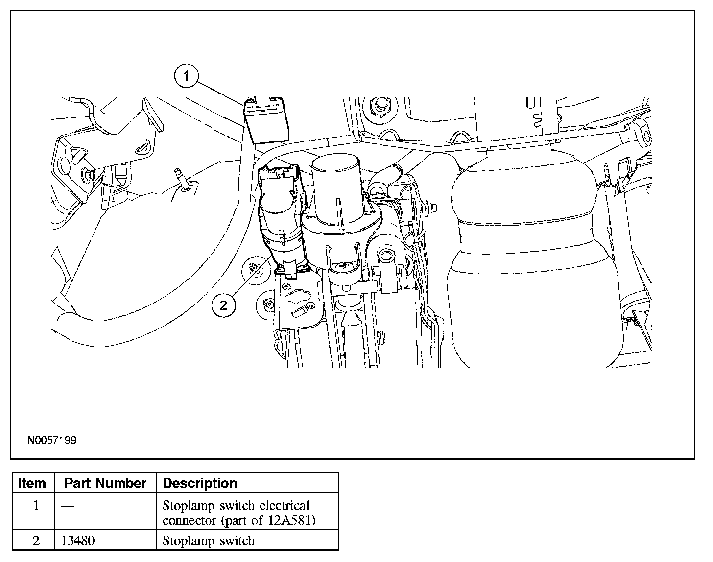CAUTION: It is very important to not press, pull or touch the brake pedal assembly during the installation of the stoplamp switch. Failure to follow these instructions may damage the stoplamp switch.