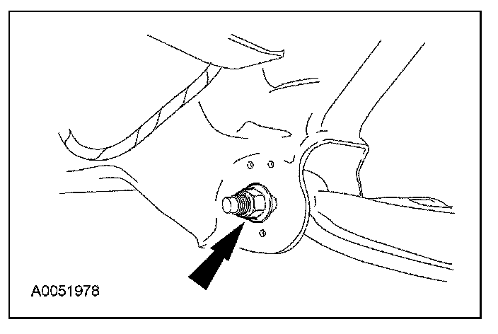 9. With the weight of the vehicle resting on the wheel and tire assemblies, hold the front cam bolt and tighten the nut to 350 Nm (258 lb-ft).