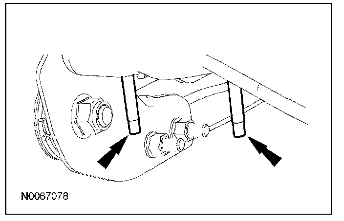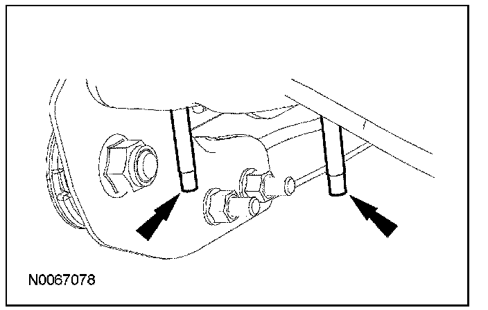 2. Remove and discard the lower arm front and rear nuts and bolts.