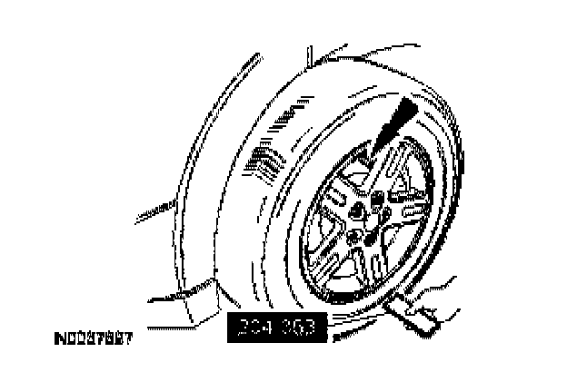 Place the Tire Pressure Monitor Activation Tool on the LF tire sidewall opposite (180 degrees) from the valve stem. Press and release the test button on the Tire Pressure Monitor Activation Tool. The horn will sound briefly to indicate that the tire pressure sensor has been recognized by the