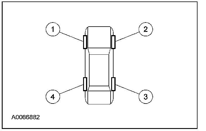 NOTE: The tire pressure sensor training procedure must be done on a single vehicle, in an area without radio frequency noise and at least 1 m (3 ft) away from other vehicles equipped with tire pressure monitoring system (TPMS).