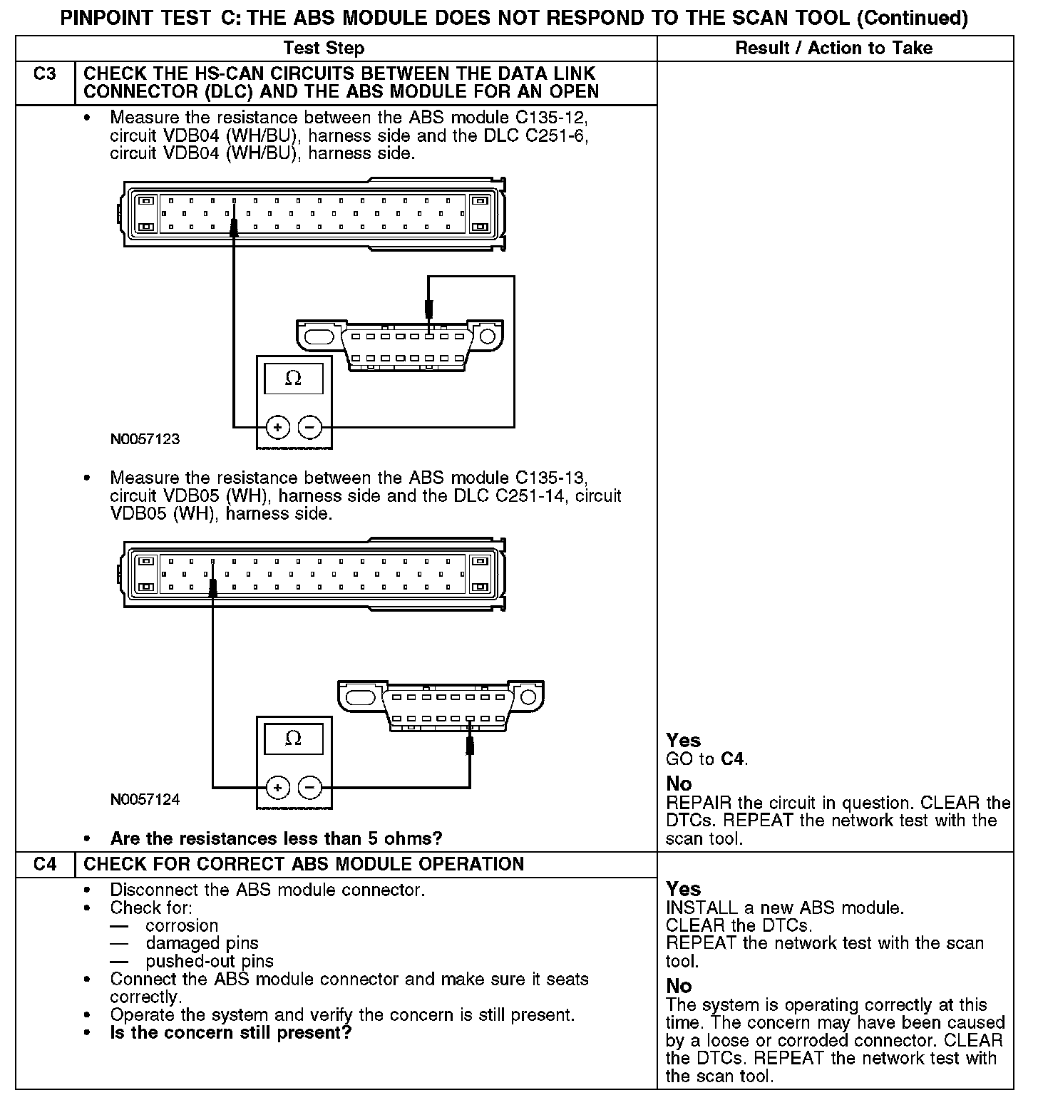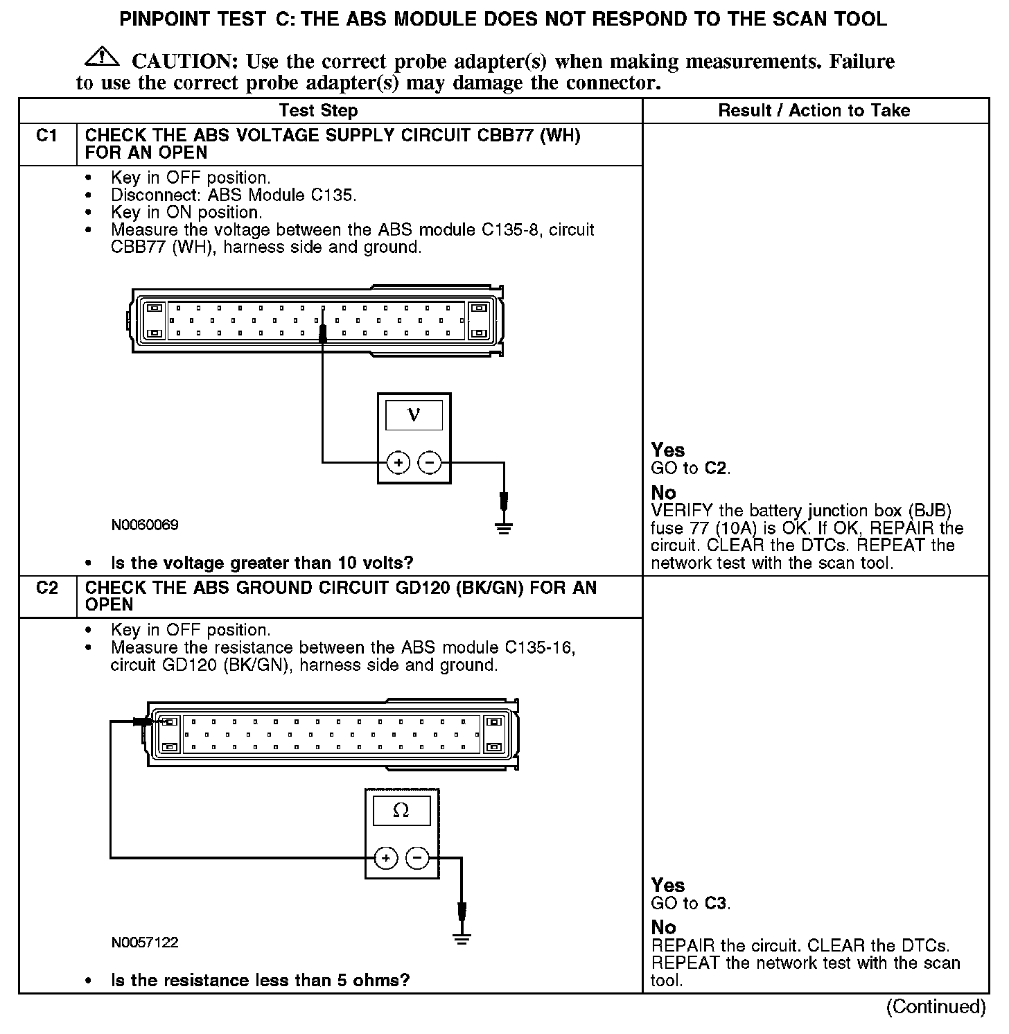 PINPOINT TEST C: THE ABS MODULE DOES NOT RESPOND TO THE SCAN TOOL