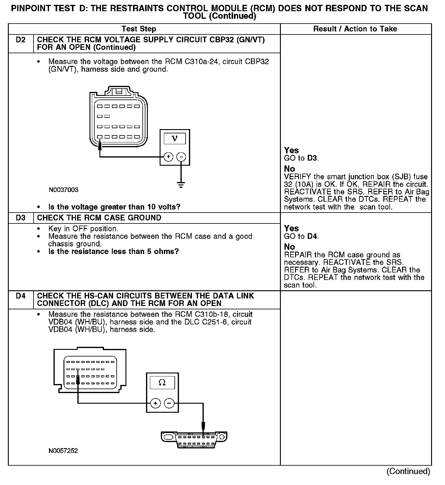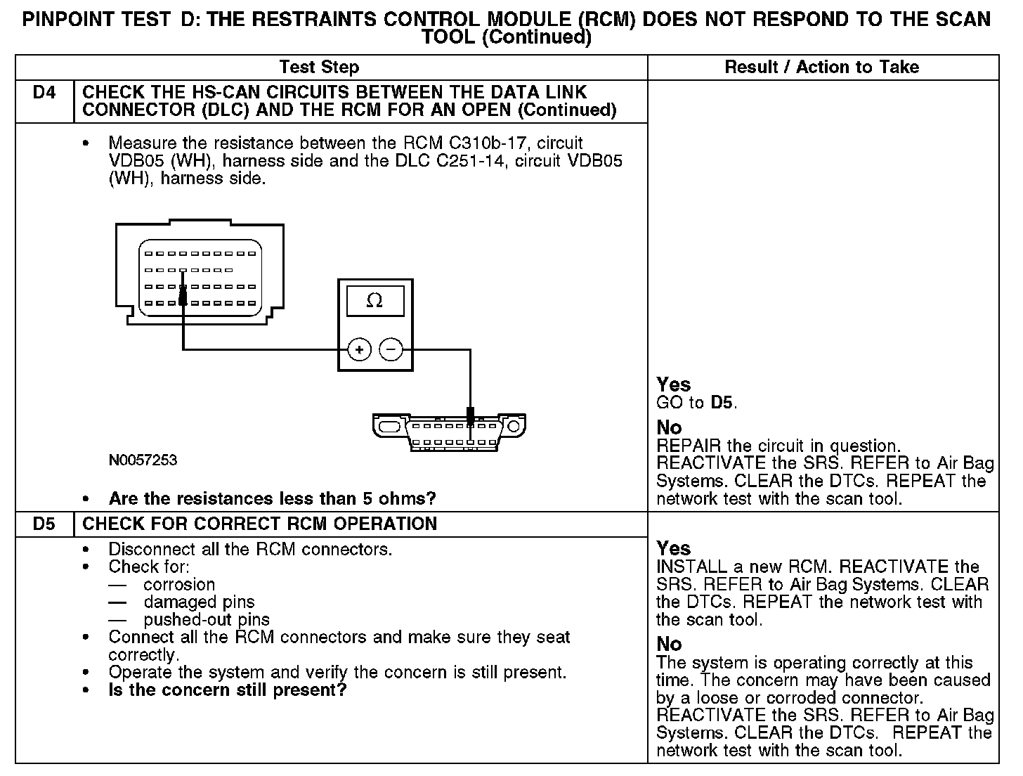 Test D: The Restraints Control Module (RCM) Does Not Respond To The Scan Tool